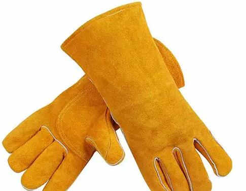 為防御焊接時(shí)的高溫、熔融金屬、火花燒灼手的個(gè)人防護(hù)用具。采用牛、豬狨革或二層革制成,按指型不同分為二指型、三指型和五指型。焊工手套有嚴(yán)格外觀要求。一級品要求革身厚薄均勻,豐滿柔軟而有彈性,革面絨毛細(xì)致、均勻、堅(jiān)牢、顏色深淺一致,無油膩感。二級品:革身缺乏豐滿彈性、革面絨毛粗、顏色略有深淺。