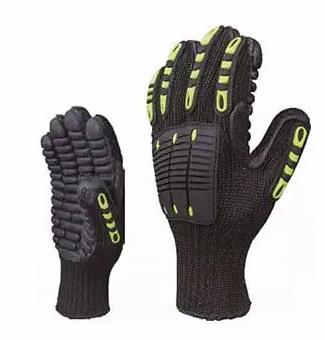 用于接觸振動(dòng)、如在林業(yè)、采礦、建筑、交通等部門用手持振動(dòng)工具(如油鋸、鑿巖機(jī)等)時(shí)預(yù)防因振動(dòng)引起振動(dòng)性職業(yè)病“白指癥”的個(gè)人防護(hù)用品。防振手套在結(jié)構(gòu)上,主要是在手掌面添加一定厚度的泡沫塑料、乳膠以及空氣夾層等來吸收振動(dòng)。襯墊厚度越厚,其含空氣量越多,減振效果愈好。但掌、指面太厚時(shí)又容易影響操作。